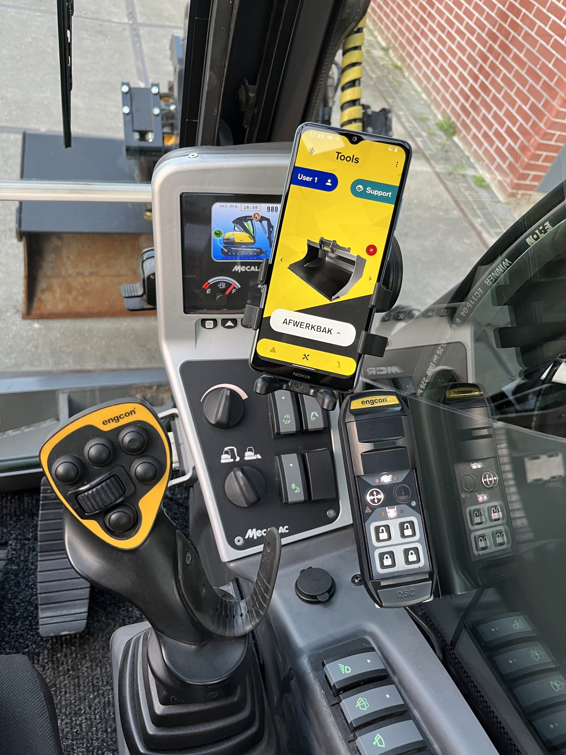 – Engcon QSC snelwissel ontgrendeling.